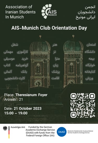 Organized by the Association of Iranian Students in Munich. Join us to meet fellow students and university alumni. Discover study tips, relish tasty food and drinks, and get familiar with Munich's vibrant cultural groups. Don't miss this chance to connect and enjoy!