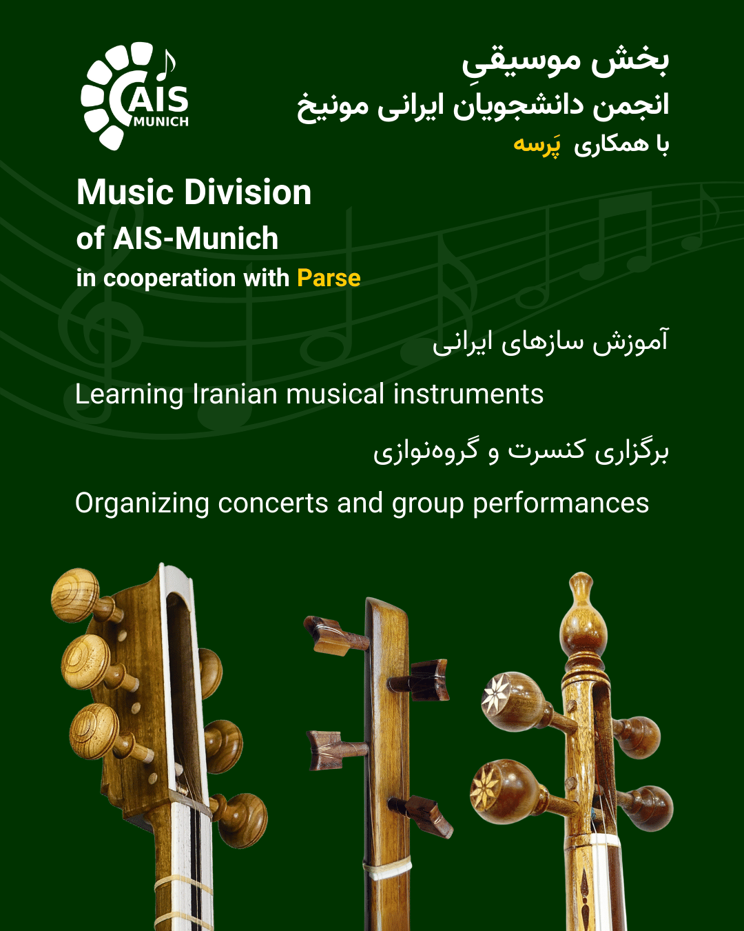 کلاسهای آموزش موسیقی ایرانی انجمن دانشجویان، با اساتید مجرب و با هزینهای مناسب، این امکان را برای ایرانیان خارج از کشور فراهم آورده است.