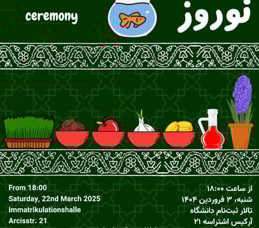 Organized by the Association of Iranian Students in Munich. Join us to meet fellow students and university alumni. Discover study tips, relish tasty food and drinks, and get familiar with Munich's vibrant cultural groups. Don't miss this chance to connect and enjoy!