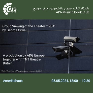 Join us for a group viewing of the theater "1984" by George Orwell at Amerikahaus, organized by the AIS-Munich Book Club! The play is in English, with discounted student tickets available. Persian translations of the book are also available for borrowing upon request. Hope to see you there!