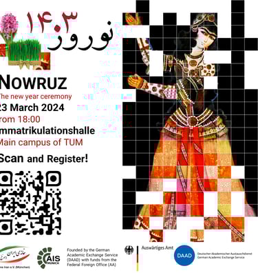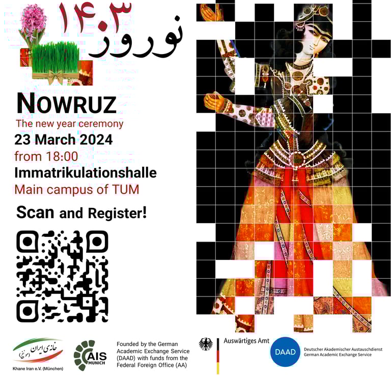 Khane-e-Iran e.V. and Association of Iranian Students in Munich are organizing a one-day Nowruz festival, a day of traditional music, dance, Persian cuisine, and art exhibitions. Our festival aims to provide a platform for cultural understanding, and unite communities in the spirit of renewal and unity.